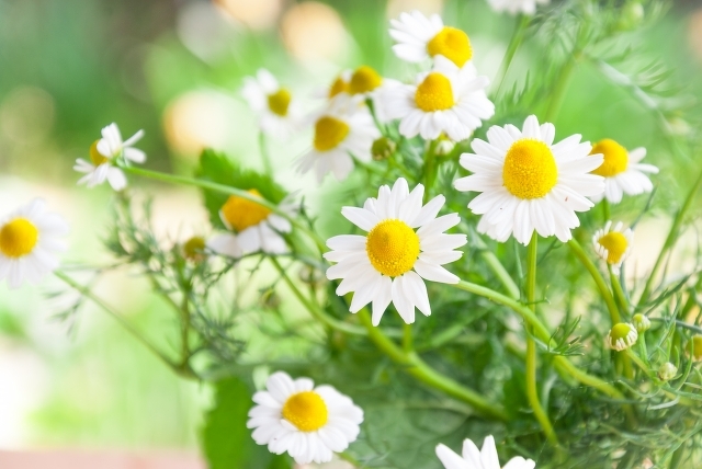 カモミールはキク科の植物で、白い小さな花が特徴。